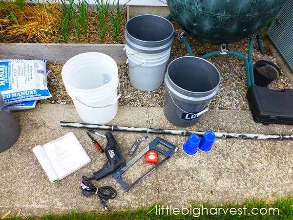 I made the necessary measurements and holes in my Earth Buckets using what I had on hand!