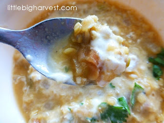 4. Serve as is or add a dollop of plain yogurt and sprinkle with cilantro. Leftover soup thickens into more of a stew that is perfect with cooked rice. Delicious!